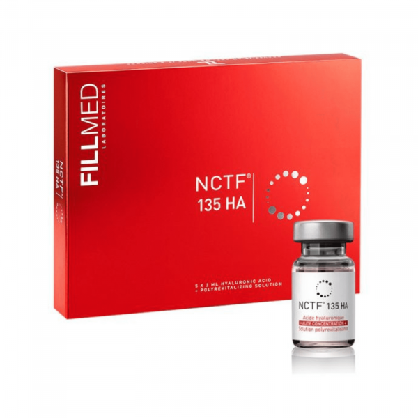 Las vitaminas NCTF 135 de Laboratorios Filorga, producto de mesoterapia anti-edad. Su composición mezcla el ácido hialurónico (activo estrella en la flexibilidad de los tejidos y en los tratamientos antiarrugas) con un cóctel polirevitalizante de 54 ingredientes.